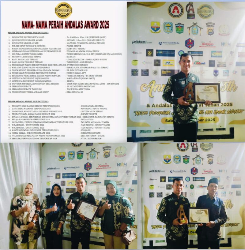 Acara penganugerahan yang berlangsung di Semurup, Kecamatan Air Hangat, Kabupaten Kerinci, Sabtu malam (7/12/2025), di selenggarakan oleh Radio Andalas. Kegiatan ini menjadi bentuk apresiasi kepada tokoh daerah, pelaku seni, penggiat media sosial, dan insan pers melalui mekanisme voting versi Andalas. Selain itu, acara ini juga memperkuat kolaborasi antara Radio Andalas dan pemerintah daerah dalam penyebaran informasi pembangunan.