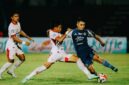 Memasuki pertengahan babak pertama, pertandingan semakin terbuka. Adu fisik dan perebutan bola terjadi di lini tengah. Namun, hingga peluit turun minum berbunyi, skor tetap 0-0.