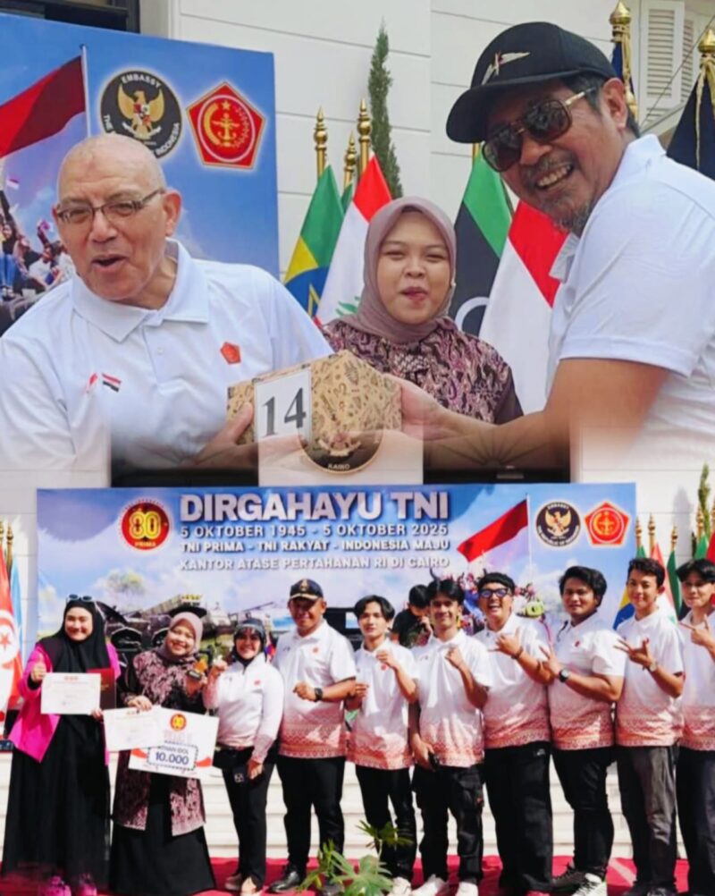 Targetlink.id – Kantor Atase Pertahanan Republik Indonesia di Cairo menggelar acara syukuran dalam rangka memperingati Hari Ulang Tahun ke-80 Tentara Nasional Indonesia (TNI) dengan penuh kekeluargaan dan kebersamaan di halaman Kedutaan Besar Republik Indonesia (KBRI) Cairo, Mesir, Minggu, 5 Oktober 2025.