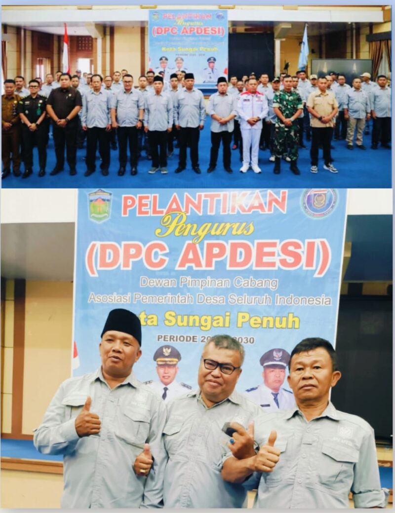 Sungai Penuh, TargetLink.id – Pelantikan Ketua Asosiasi Pemerintah Desa Seluruh Indonesia (APDESI) Kota Sungai Penuh, Amrizal, berlangsung sukses dan penuh kekeluargaan. Acara yang digelar di Sungai Penuh ini turut di hadiri oleh jajaran pejabat penting daerah, di antaranya Wali Kota Sungai Penuh, Alfin SH, Wakil Wali Kota, Azhar Hamzah, Sekda Kota Sungai Penuh, Alpian, Ketua APDESI Provinsi Jambi, Samsul Puad, Kadis Pemdes Kota Sungai Penuh beserta Kabid Pemdes, perwakilan dari Kapolres Kerinci, Dandim 0417/Kerinci, seluruh Camat se-Kota Sungai Penuh, serta unsur Organisasi Perangkat Daerah (OPD) Kota Sungai Penuh.