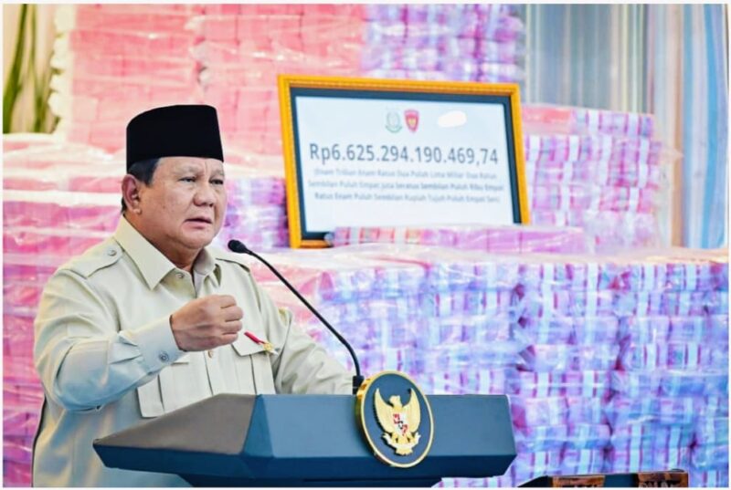 Jakarta, Targetlink.id – Presiden Prabowo Subianto memberi apresiasi tinggi kepada Satgas PKH atas keberanian dan kerja keras mereka menegakkan hukum serta menyelamatkan kekayaan negara. Penghargaan ini di sampaikan saat penyerahan hasil penyelamatan keuangan negara di Kejaksaan Agung, Jakarta, Rabu (24/12/2025).