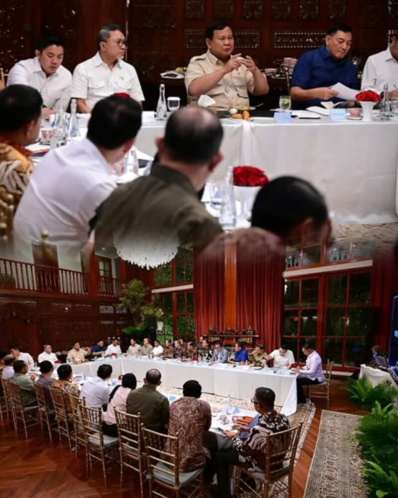 TargetLink.id – Presiden Prabowo Subianto memimpin rapat bersama sejumlah menteri Kabinet Merah Putih di kediaman pribadinya, Jalan Kertanegara, Jakarta, Minggu (28/09/2025) petang.