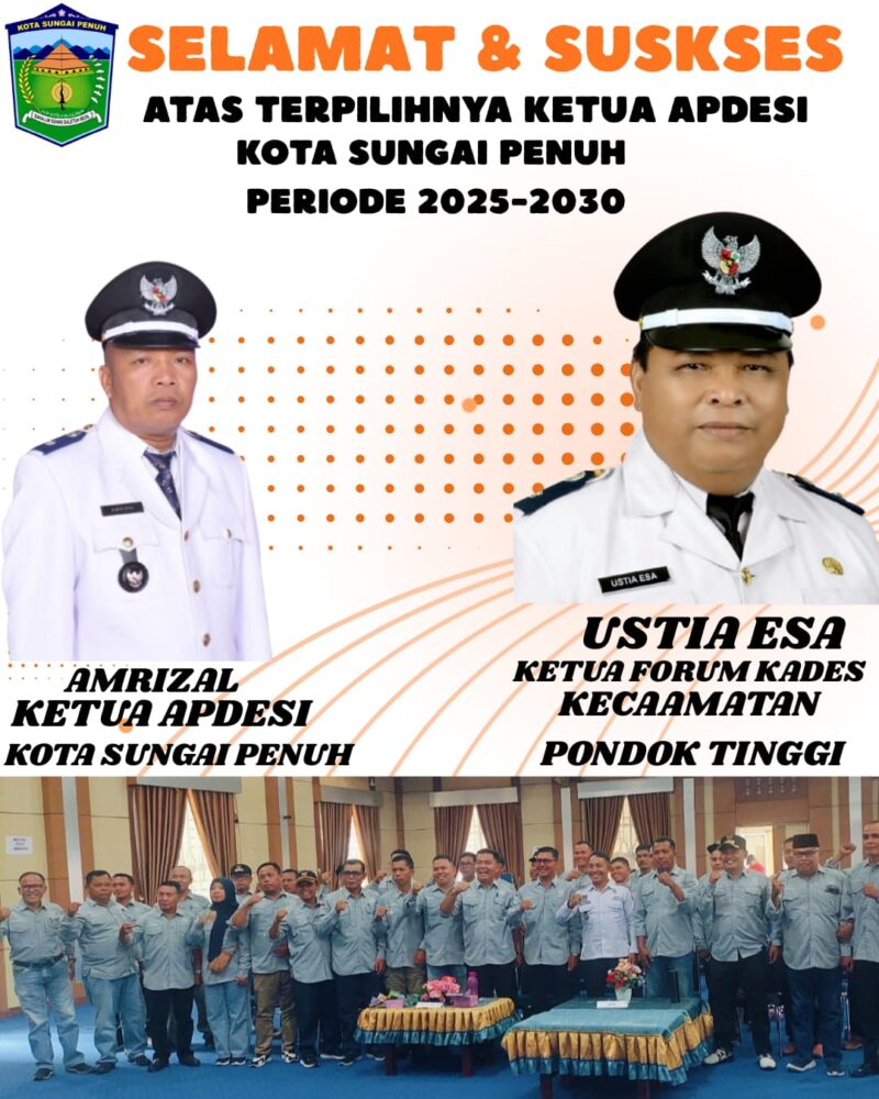 Ustia Esa ” Ketua Forum Beserta Anggota Kades se- Kecamatan Pondok tinggi”, kecamatan Pondok Tinggi, Kota Sungai Penuh, Mengucapkan: Selamat dan Sukses Atas terplihnya, Amrizal Kades Sandaran Galeh sebagai Ketua APDESI Kota Sungai Penuh Semoga Amanah Dalam Menjalankan tugas dan Jabatan Ke arah yang lebih baik, aminn