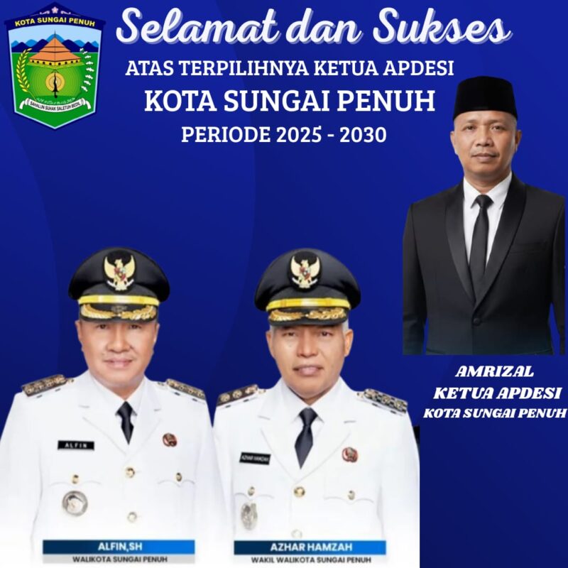 TargetLink.id – Walikota dan wakil wali kota sungai penuh, dengan bangga mengucapkan selamat atas terpilihnya Amrizal (Kepala Desa Sandaran Galeh) sebagai Ketua APDESI Kota Sungai Penuh periode 2025-2030. Kami yakin di bawah kepemimpinan Amrizal, APDESI Kota Sungai Penuh akan semakin JUARA, BERSINERGI, dan HARMONIS.ADVERTISEMENT