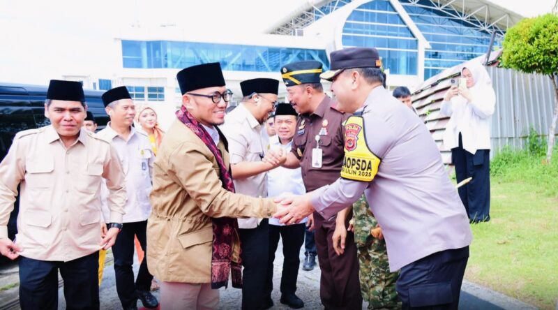 Jambi, Targetlink.id – Wakapolda Jambi Brigjen Pol. M. Mustaqim menyambut langsung kedatangan Wakil Menteri Haji dan Umrah Republik Indonesia, Dr. H. Dahnil Anzar Simanjuntak, di VIP Room Bandara Sultan Thaha Saifuddin Jambi, Rabu (24/12/2025). Penyambutan ini di lakukan sebagai bagian dari rangkaian kunjungan kerja di Provinsi Jambi.